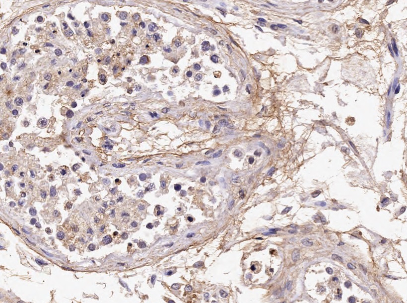 Paraffin embedded Human Testis. Recommended concentration: 4µg/ml.