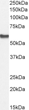 Approx. 58-60kDa band observed in Human Skeletal Muscle lysates and in Rat Testis lysates, and approx.60kDa in Human Testis lysates, and in preliminary testing of THP-1 cell lysate (calculated MW of 55.8kDa according to Human NP_001617.1 and 55.5kDa according to Rat NP_058789.1). Recommended concentration: 0.5-1µg/ml. Primary incubation 1 hour at room temperature