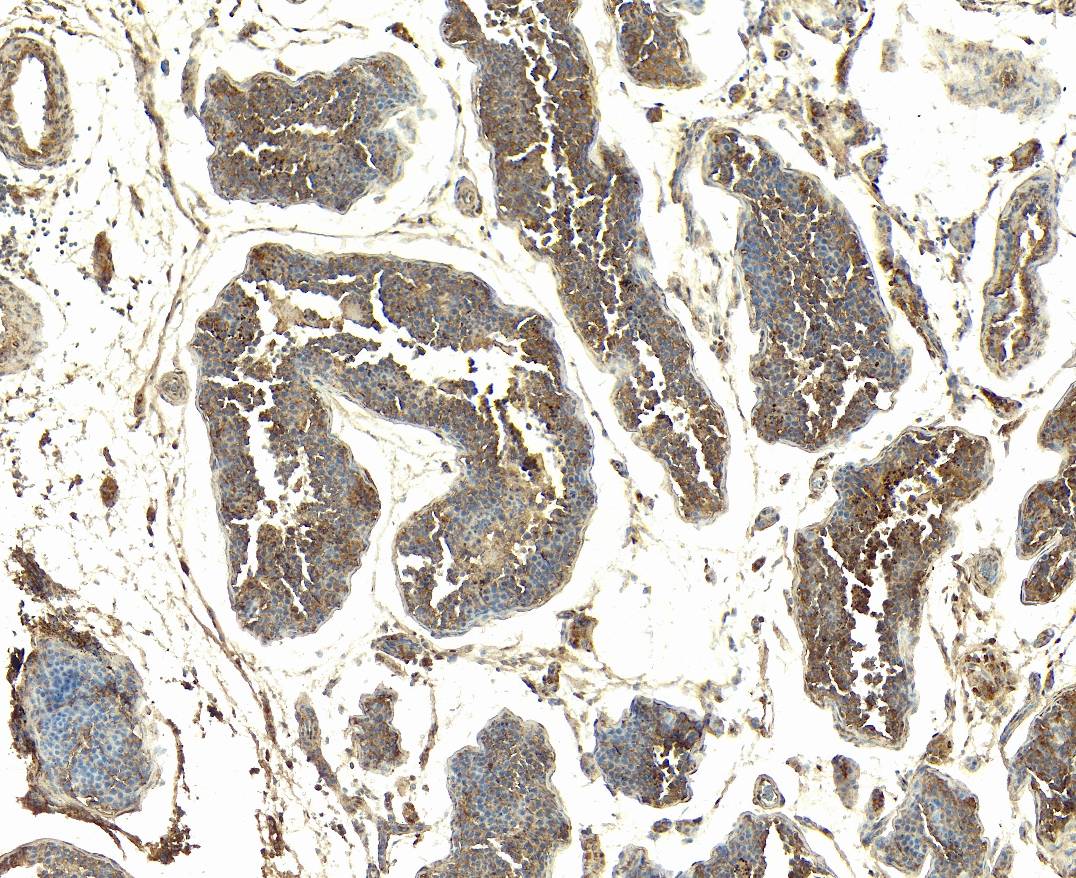 Paraffin embedded Human Testis. Recommended concentration: 4-6µg/ml.