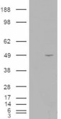 Western Blot Approx 35kDa band observed in Human Heart, Liver and Muscle lysates (calculated MW of 47.0kDa according to NP_061041.2 (alpha isoform) and 31.2kDa according to AAF71042.1 (beta isoform). In transfected HEK293 transiently expressing ILPIP a band of approx. 48kDa is observed. This band is not observed in the non-transfected HEK293. Recommended concentration: 1-3µg/ml. | |