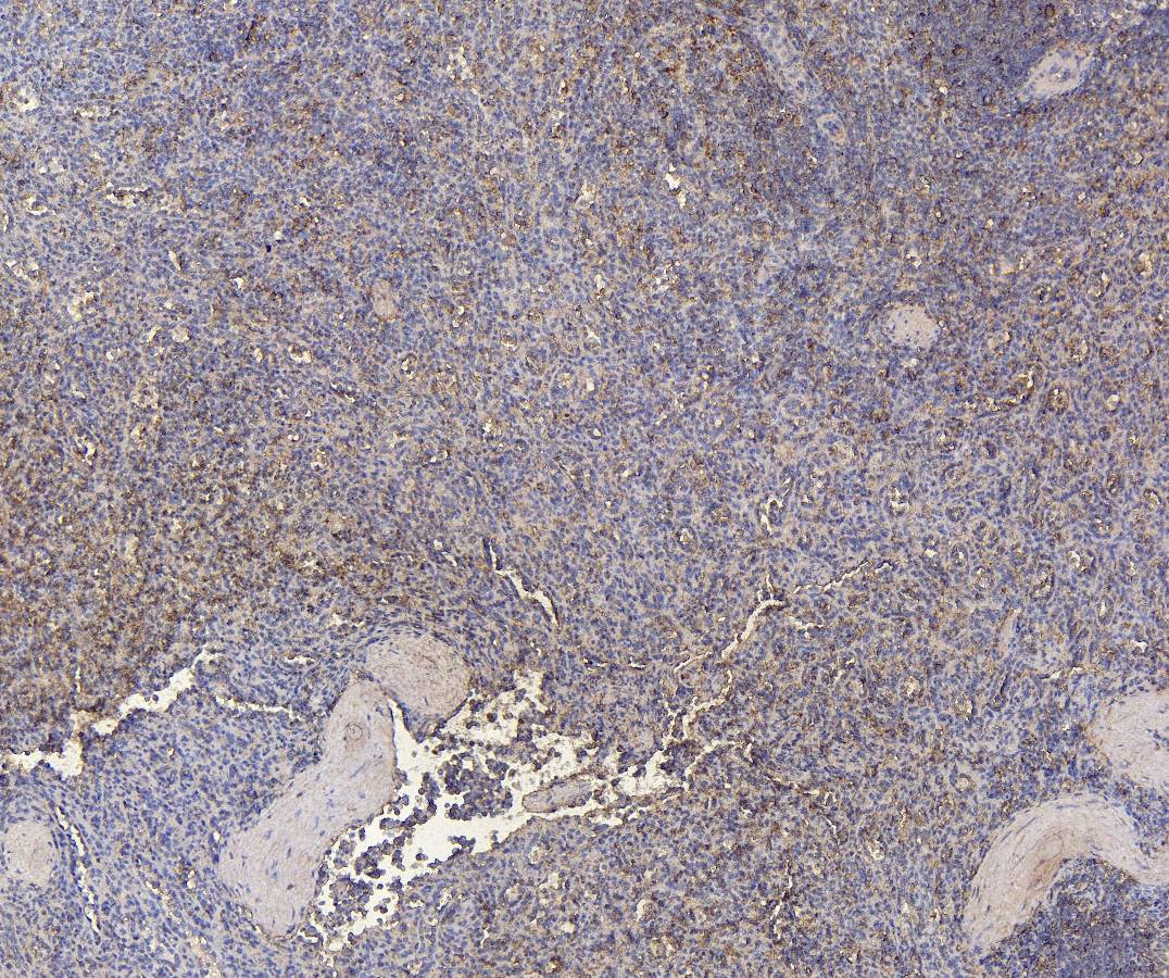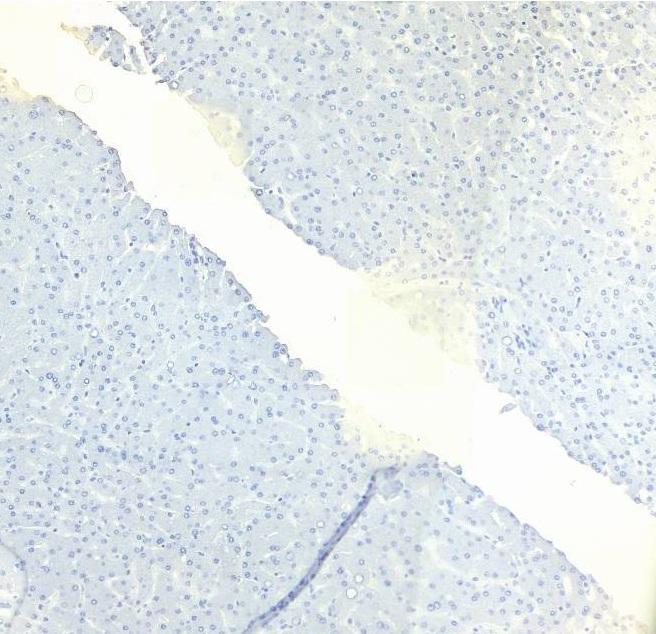 Paraffin embedded Human Liver and Spleen. Recommended concentration: 4-5µg/ml.