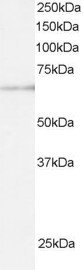 Western Blot Approx 65kDa band seen in U937 lysate [Predicted MW of approx. 61kDa according to NP_005735]. Recommended for use at 0.2-1µg/ml. Primary incubated for 1 hour. | |