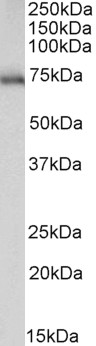 Western Blot Approx 70kDa band observed in Mouse fetal Brain lysates (calculated MW of 64.8kDa according to NP_064423.2). Recommended concentration: 0.3-1µg/ml. Primary incubation was 1 hour. | |