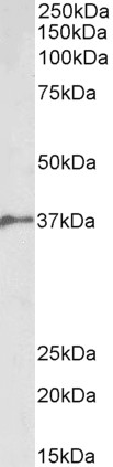 Approx 37kDa band observed in Pig Bone Marrow lysates (calculated MW of 36.9kDa according to NP_001272900.1 ). Recommended concentration: 1-3µg/ml. | |