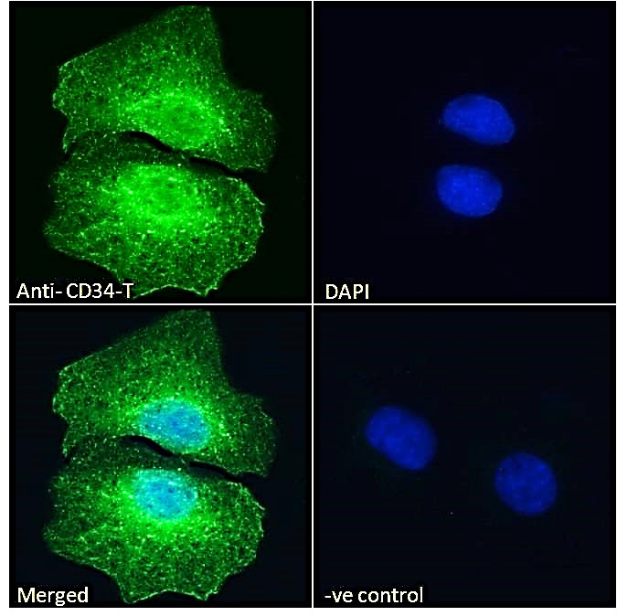 This antibody is expected to recognize reported isoform CD34-T (NP_001020280.1) only.