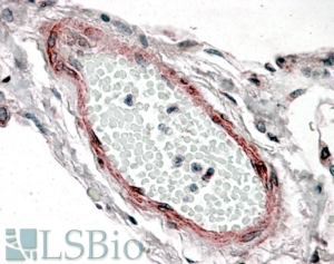IHC Results In paraffin embedded Human Lung shows staining of the endothelial cells of a blood vessel. Recommended concentration: 3-6µg/ml. | |