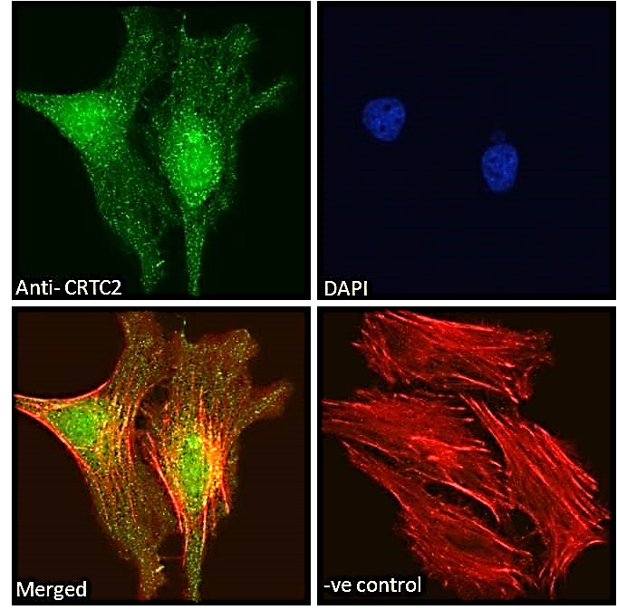 Usage Summary Immunofluorescence: Strong expression of the protein seen in the nuclei of HeLa and U2OS cells. Recommended concentration: 10µg/ml.