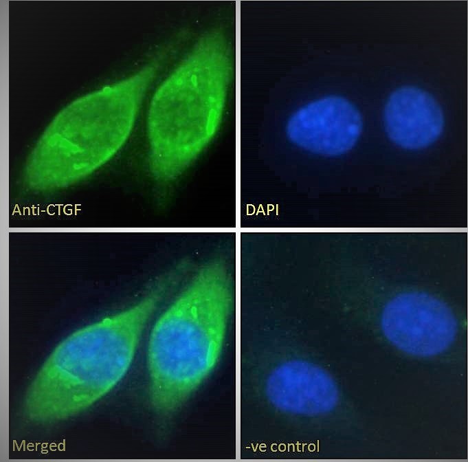Usage Summary Immunofluorescence: Strong expression of the protein seen in the cytoplasm of HepG2 and NIH3T3 cells. Recommended concentration: 10µg/ml. | |