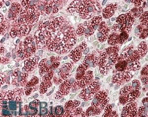 IHC Results In paraffin embedded Human Adrenal Gland shows heavy vesicular/granular staining in the cytoplasm of medular cells. Recommended concentration, 3-5µg/ml. | |