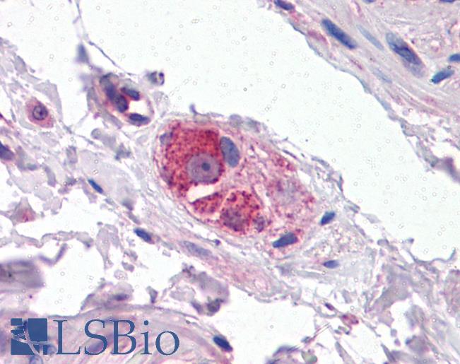 IHC Results In paraffin embedded Human Cerebellum shows staining of cell bodies in the Molecular Layer. Recommended concentration: 4-6µg/ml. Paraffin embedded Human Small Intestine, Spleen and Testis. Recommended concentration: 3.75µg/ml. | |
