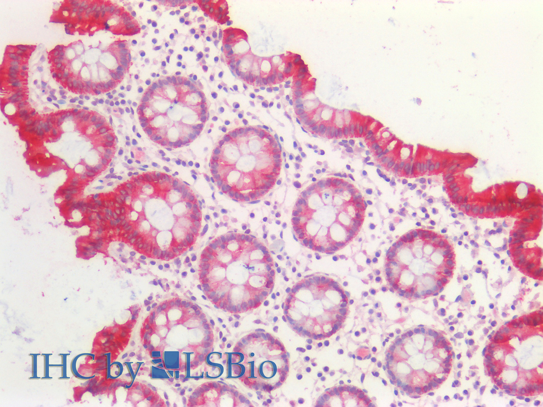 Western Blot Approx 49kDa band observed in Human Colon and Ileum lysates (calculated MW of 48.5kDa according to NP_061883.1). Recommended concentration: 0.01-0.03µg/ml. Primary incubation was 1 hour. | |