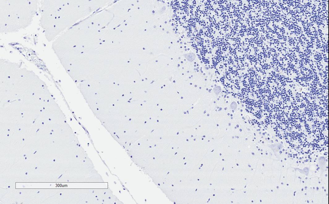 IHC Results In paraffin embedded Human Cerebellum shows pixulated cytoplasm staining in neurons directly near the granular layer. Recommended concentration: 2-4µg/ml. | |