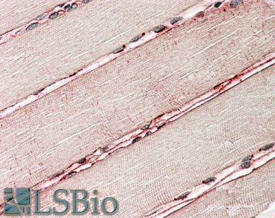 IHC Results In paraffin embedded Human Skeletal Muscle shows sarcolemmar staining of the fibres. Recommended concentration, 3-5µg/ml. | |