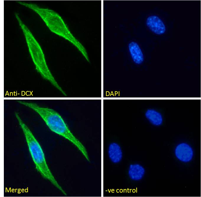 Immunofluorescence: Strong expression of the protein seen in the cytoplasm of NIH3T3 cells. Recommended concentration: 5µg/ml.
