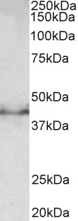 Approx 40kDa band observed in Mouse fetal Brain lysates (calculated MW of 40.6kDa according to NP_001103692.1). Recommended concentration: 0.5-2µg/ml. Primary incubation was 1 hour.