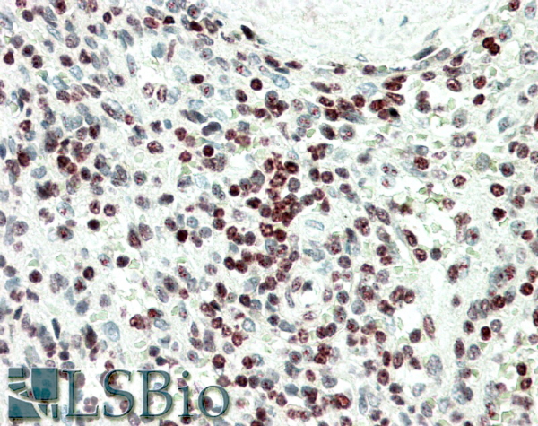 IHC Results In paraffin embedded Human Spleen shows nuclear staining of select lymphocytes in the marginal zone. Recommended concentration, 5-10µg/ml. | |