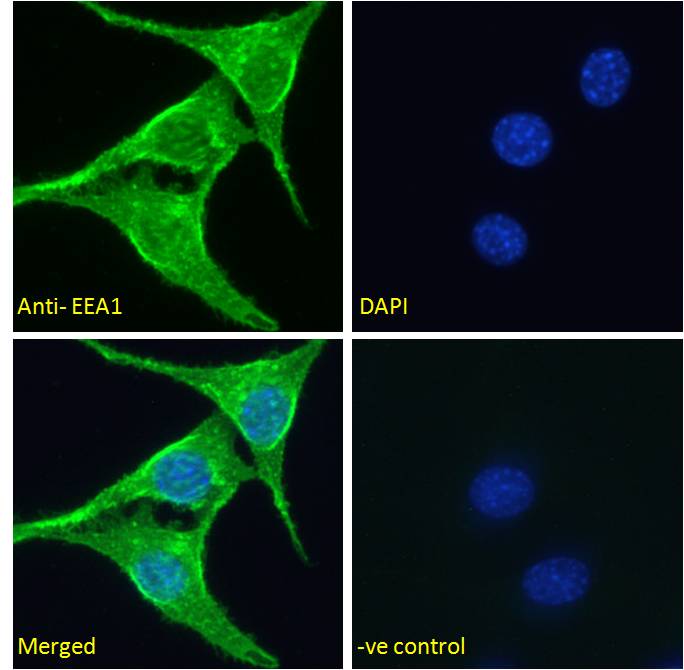 Immunofluorescence :Strong expression of the protein seen in the vesicles/cytoplasm of NIH3T3 cells. Recommended concentration: 5µg/ml.