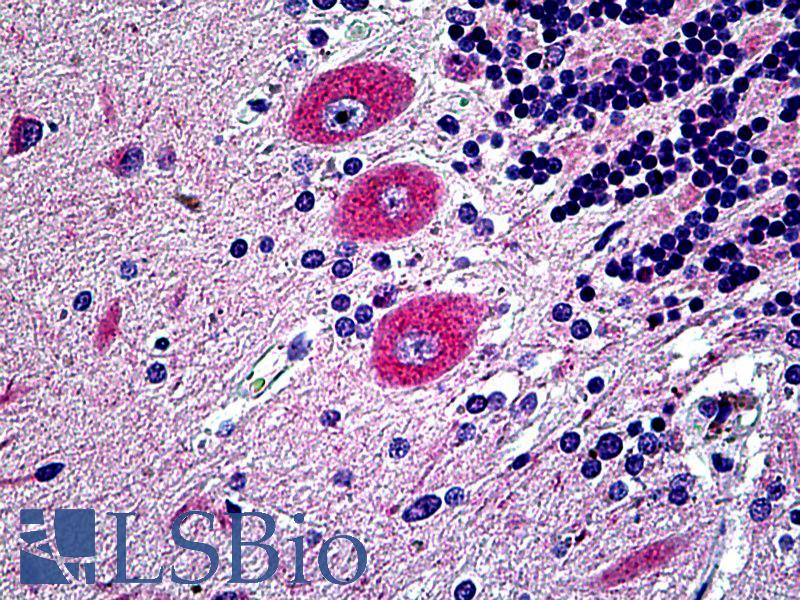 IHC Results Paraffin embedded Human Small Intestine and Brain (Cerebellum). Recommended concentration: 3.75µg/ml. | |