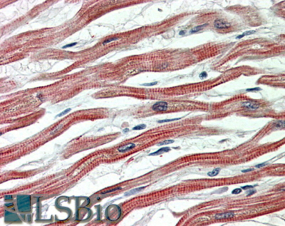 In paraffin embedded Human Heart shows regular staining of sarcoplasmic reticulum in the cardiac fibers. Recommended concentration, 5-10µg/ml.