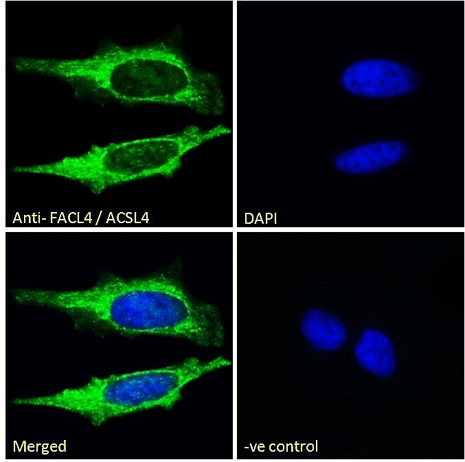 Usage Summary Immunofluorescence: Strong expression of the protein seen in the Golgi and Endoplasmic reticulum of HeLa cells. Recommended concentration: 10µg/ml.