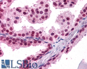 IHC Results In paraffin embedded Human Prostate shows nuclear staining in the secretory cells of the gland. Recommended concentration: 4-8µg/ml. | |