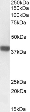 Western Blot Approx 37-38kDa band observed in Mouse and Rat Skin lysates (calculated MW of 42.0kDa according to Mouse NP_001094934.1 and 41.9kDa according to Rat NP_001102819.1). This band was successfully blocked by incubation with the immunizing peptide.. Recommended concentration: 1-3µg/ml. Primary incubation 1 hour at room temperature. | |