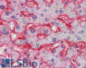 In paraffin embedded Human Liver shows strong staining of the endothelial lining cells. Recommended concentration: 2-6µg/ml.