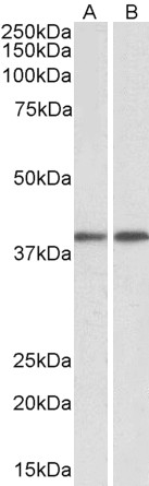 Western Blot Approx 40kDa band observed in Human, Mouse and Rat Testis lysates, in Pig Colon and Spleen lysates and in lysates of Human Peripheral Blood Mononucleocytes (calculated MW of 42.1kDa according to Human NP_002063.2 and to Rat NP_112298.1 ). Recommended concentration: 0.1-0.3µg/ml. | |