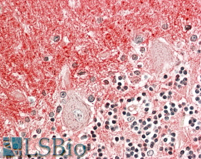 IHC Results In paraffin embedded Human Cerebellum shows strong axonal staining in the Molecular layer and less so in the Granular layer. Recommended concentration, 3-5µg/ml. | |