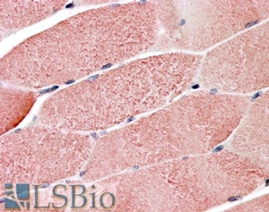 IHC Results In paraffin embedded Human Skeletal Muscle shows pixulate staining in the fibres. Recommended concentration, 3-6µg/ml. | |