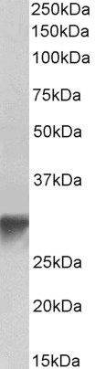 Approx 33kDa band observed in lysates of Human Platelets and Mouse Brain (calculated MW of 33.8kDa according to NP_071413.1). Recommended concentration: 0.1-0.3µg/ml.