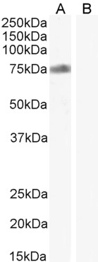 Western Blot Approx 75kDa band observed in lysates of cell line Daudi and in Mouse Spleen lysates (calculated MW of 65.3kDa according to Human NP_000388.2 and Mouse NP_031833.3). This band was successfully blocked by incubation with the mmunising peptide, and corresponds to the glycosylated form as described in the literature (V. Munnamalai et al, 2014: PMID: 24702317 and J. Van Buul er al, 2005: PMID: 15706079) Recommended concentration: 1-3µg/ml. Primary incubation 1 hour at room temperature. | |