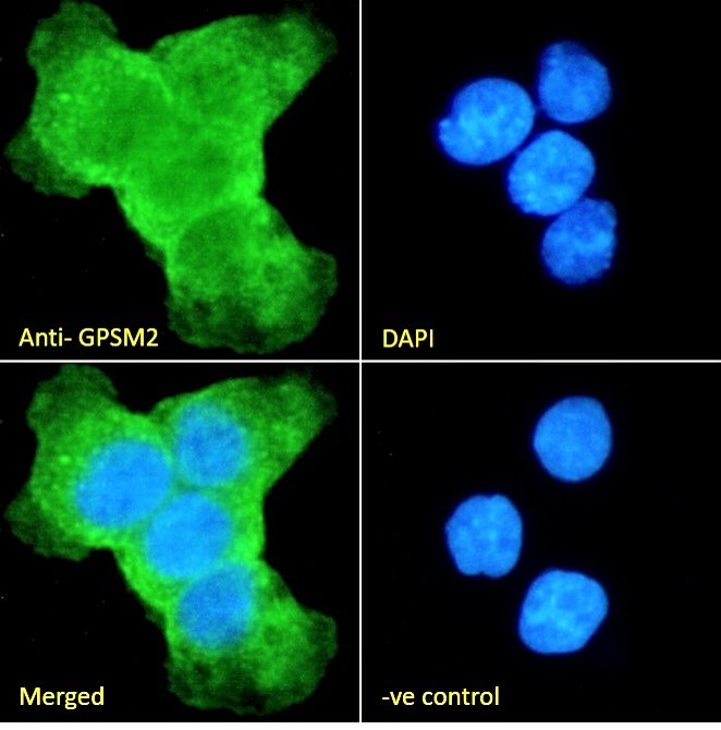 Usage Summary Immunofluorescence: Strong expression of the protein seen in the cytoplasm/ centrosomes of A431 cells. Recommended concentration: 10µg/ml. | |