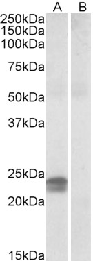 Approx 24kDa band observed in Human Pancreas (calculated MW of 11.7kDa/10.7kDa according to NP_665906.1; NP_002122.1). This molecular weight is routinely observed by other sources. This band was successfully blocked by incubation with the immunizing peptide. Recommended concentration: 0.5-1µg/ml. Primary incubation was 1 hour.
