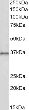 Western Blot Approx 36kDa band observed in lysates of cell line HepG2 (calculated MW of 38.1kDa according to NP_059105.2). Recommended concentration: 1-3µg/ml. Primary incubation was 1 hour. | |