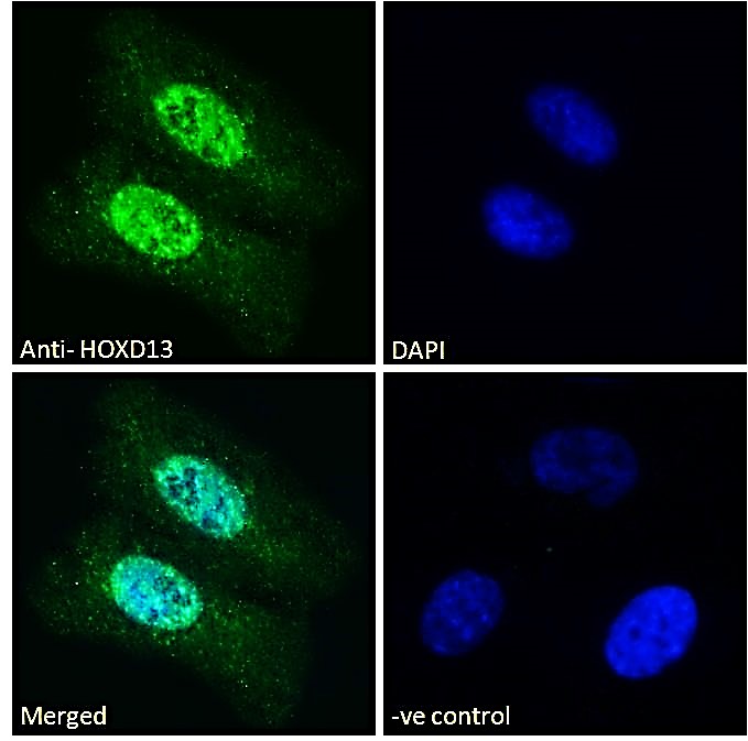 Usage Summary Immunofluorescence: Strong expression of the protein seen in the nucleus of HEK293 and U2OS cells. Recommended concentration: 10µg/ml. | |