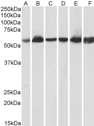 Western Blot Approx 60kDa band observed in Human and Pig Heart, Kidney and Liver and in Rat Kidney lysates (calculated MW of 61.1kDa according to Human NP_002147.2 and 60.9kDa according to Pig NP_001241645.1 and Rat NP_071565.2 ). Recommended concentration: 0.01-0.1µg/ml. Primary incubation 1 hour at room temperature. | |