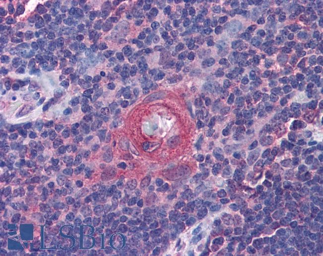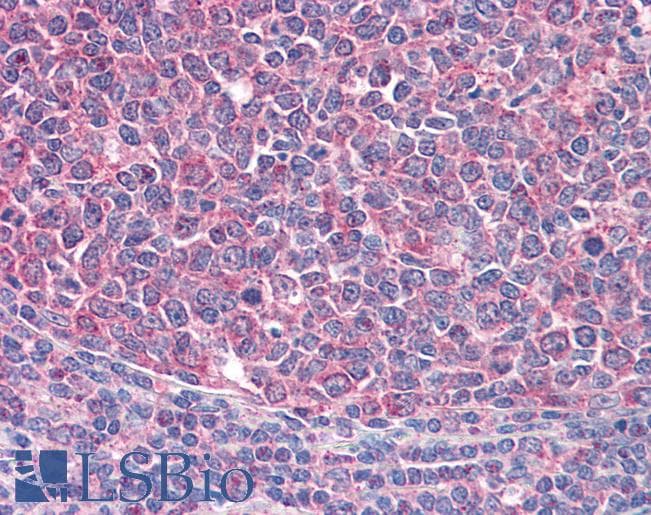 IHC Results In paraffin embedded Human Lymph Node shows membrane staining just outside the mantle zone of the Germinal Centre. Recommended concentration: 1-2µg/ml. Paraffin embedded Human Tonsil and Thymus. Recommended concentration: 3.75µg/ml. | |