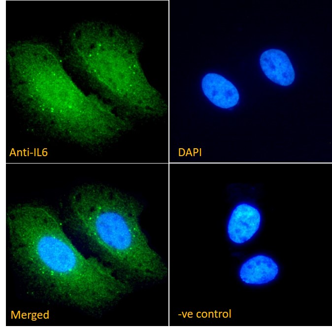 Immunofluorescence: Strong expression of the protein seen in U2OS cells. Recommended concentration: 10µg/ml.