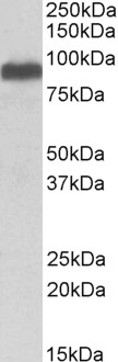 Approx 90kDa band observed in Human Brain (Frontal Cortex) lysates (calculated MW of 86.4kDa according to NP_001244067.1) . Recommended concentration: 0.1-0.3µg/ml. Primary incubation 1 hour at room temperature.