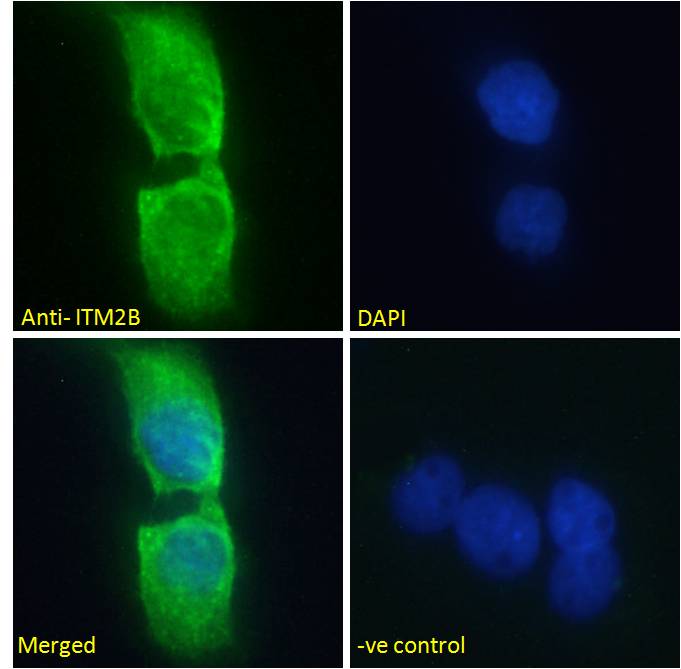 Immunofluorescence: Strong expression of the protein seen in the cytoplasm and Golgi apparatus of A431 and HeLa cells. Recommended concentration: 10µg/ml.