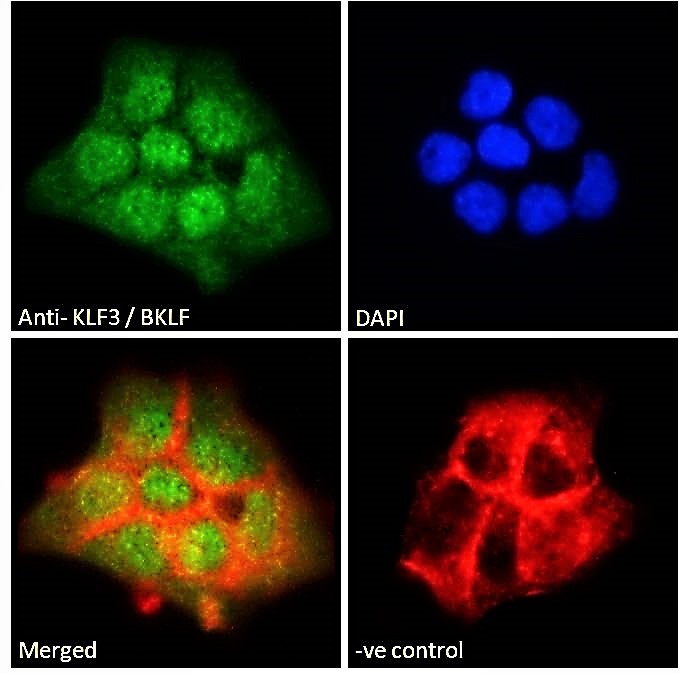Usage Summary Immunofluorescence: Strong expression of the protein seen in the nuclei of A431 and A549 cells. Recommended concentration: 10µg/ml.