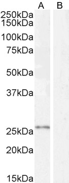 Western Blot Approx 26kDa band observed in lysates of cell line HeLa, which was successfully blocked by incubation with the immunizing peptide (calculated MW of 28.7 according to NP_005542.1 and 24.7kDa according to NP_001002231.1 ). Recommended concentration:0.5-2 µg/ml. Primary incubation 1 hour at room temperature. | |