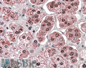 IHC Results In paraffin embedded Human Adrenal Gland shows staining of cytoplasm and some nuclear membrane (nuclear pores). Recommended concentration, 3-6µg/ml. | |
