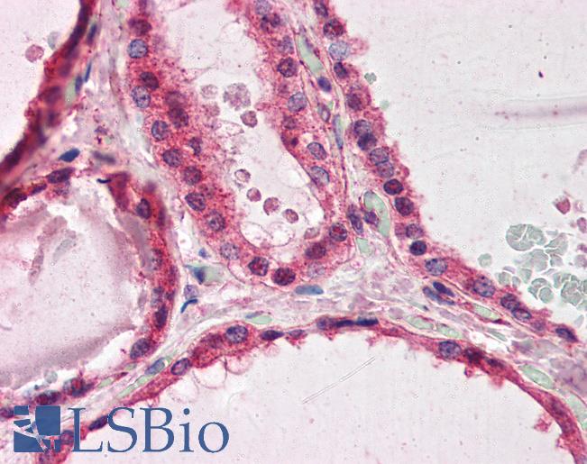 Western Blot Approx 40kDa band observed in Human Lung and Brain (Cerebellum) and in Rat Ovary lysates (calculated MW of 46.6kDa according to Human NP_000421.1 and to Rat NP_113951.1). Recommended concentration: 0.3-1µg/ml. | |