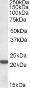 Approx 22kDa band observed in Human Liver, Lung and Lymph Node lysates (calculated MW of 29.8kDa according to precursor NP_004150.1). The observed molecular weight corresponds to earlier findings in literature with different antibodies (Schwarz et al, J Immunol. 2000 Jul 15;165(2):768-78. PMID: 10878350. Recommended concentration: 0.01-0.03µg/ml. Primary incubation was 1 hour.