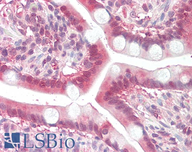 Western Blot Approx 37kDa band observed in Human Colon, Duodenum and Ileum lysates (calculated MW of 38.2kDa according to NP_079374.2). Recommended concentration: 0.05-0.2µg/ml. Primary incubation was 1 hour. | |