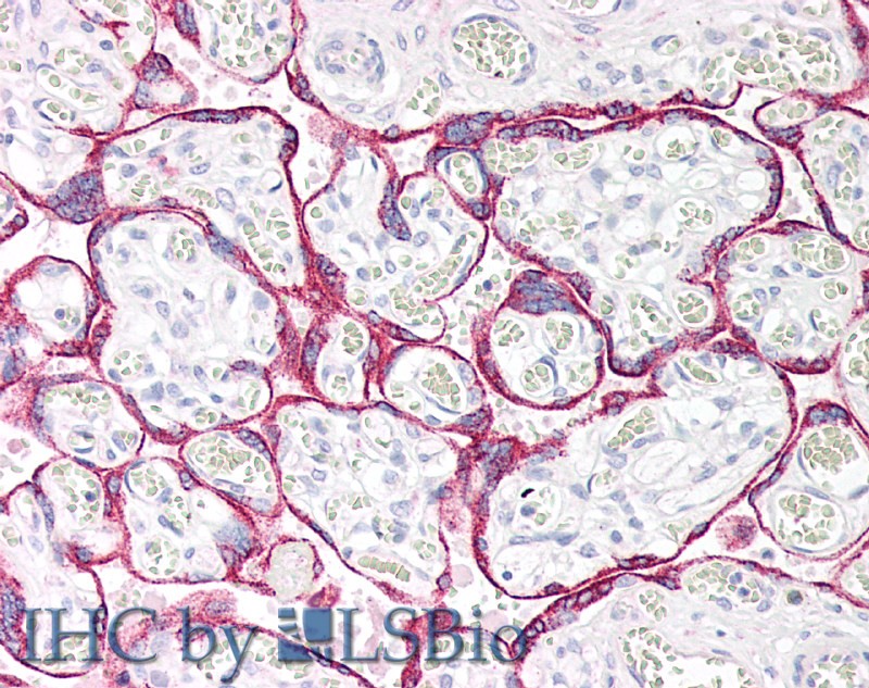 Paraffin embedded Human Placenta and Small Intestine. Recommended concentration: 5µg/ml.