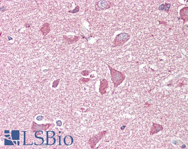 Frozen section of Olfactory bulb from transcardially PFA-perfused Mouse shows strong staining of axon bundles (right side middle, figure 1) and moderate peripheral staining outside the glomeruli (top, figure 1). NCAM2 (red) is stained complementary to VGLUT2 (blue) and NQO1 (green) in figure 2. Recommended concentration: 0.5µg/ml. Paraffin embedded Human Brain (Cortex). Recommended concentration: 3.75ug/ml. This antibody has been successfully used in IHC in the following papers, PMID: 37724425 and PMID: 32043120.