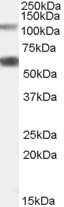 Approx 110kDa band observed in Rat Pancreas lysates calculated MW of 116kDa according to NP_858058.2). An additional band of unknown identity was also consistently observed at 60kDa. This band was successfully blocked by incubation with the immunising peptide. Recommended concentration: 0.05-0.2µg/ml. Primary incubation 1 hour at room temperature. Preliminary testing was unsuccessful on Mouse Brain for this particular batch.
